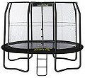The Oval JumpPod from JumpKing is a complete trampoline set. Unlike traditional outdoor trampolines, the Oval JumpPod comes with an integrated safety net enclosure, which saves on costs, looks better (no ugly fixing brackets), and cuts down assembly time (and of course dis-assembly time if you need to be able to take it down). This combination set provides you with everything you need to get the whole family up and bouncing. The Jump King Oval JumpPod is durable, attractively designed, and the enclosure netting is fully-supported by a horizontal shock-corded rod, creating a secure and impressive bounce arena. All in all, the Oval JumpPod is an innovation in outdoor trampoline design. This product is ideal for those customers who are looking for a good trampoline and want a simply-good solution in one easy-to-manage delivery (includes trampoline, enclosure, ladder) at a very competitive price!