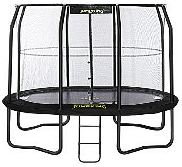 The JumpKing 7 ft x 10 ft Oval JumpPod Trampoline is a compact, high-quality oval trampoline with a fully integrated safety enclosure, ideal for smaller gardens where space is limited but performance remains important. Its oval shape provides a longer jumping area compared to a round trampoline of similar width, improving usability and bounce control. This innovative design combines the trampoline and enclosure into a single unit, eliminating the need for brackets and simplifying assembly. The advanced over and under Eurospring™ system enhances jumping performance while reducing stress on the frame. Features: Fully stitched-in enclosure for increased safety, with an elegant design that ensures quick setup and a secure, taut fit. Horizontal quick-fit shock-corded rods create a strong and stable enclosure. Unique Tri-Layer socket improves durability and safety, allowing poles to slot directly into place without brackets. Fully fastened entry/exit door for maximum security. Fully galvanised steel frame for long-lasting outdoor use. Manufactured by JumpKing, one of the world’s leading trampoline brands. MORE IMAGES: