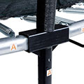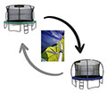 - Revolutionary design, trampoline and enclosure slot together as one unit - no brackets required